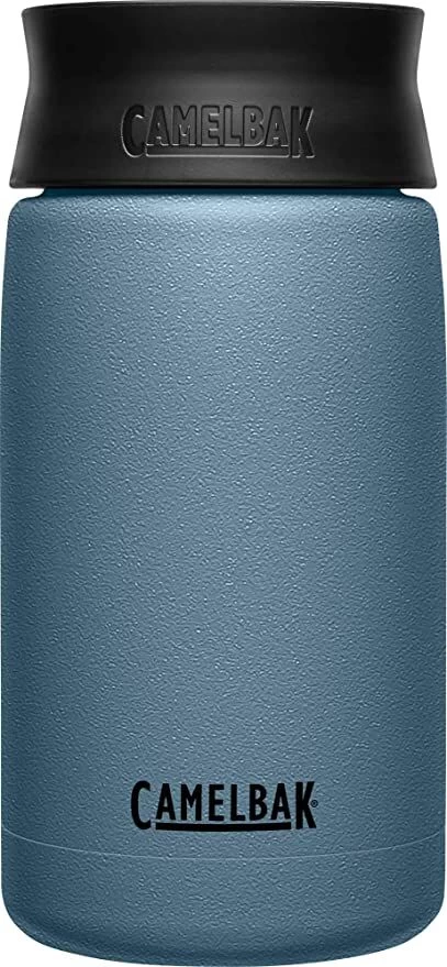 De Camelbak Hot Cap drinkfles is gemaakt van grijsblauw dubbelwandig roestvrijstaal en heeft een BPA-vrije kunstof dop. De fles heeft een inhoud van 350 ml en is 16 cm hoog en is daarmee de kleine variant van de 600ml Hot Cap fles. De fles is voorzien van een speciale lekvrije dop en dankzij de vacuümgeisoleerde wand blijft de buitenkant van de fles droog. Gebruik de Camelback drinkfles voor het meenemen van koude en warme dranken; deze fles houdt vloeistoffen namelijk 6 uur warm of 24 uur koud.