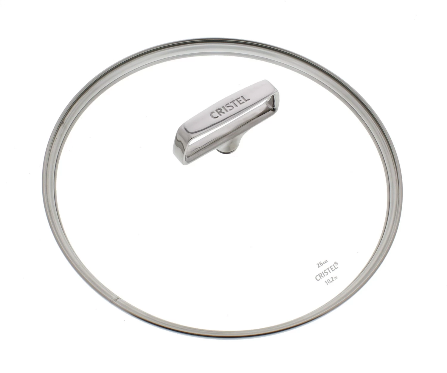 Het Cristel Castel’Pro glasdeksel heeft een diameter van 26 cm. Het deksel is gemaakt van glas en heeft een roestvrijstalen greep en stootrand. De handgreep is comfortabel vormgegeven. Gebruik het glasdeksel voor het afsluiten van Cristel Castel’Pro pannen.