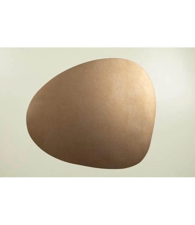 De koperkleurige Finesse Skin Natur Pebble placemat biedt op zeer duurzame en kleurrijke wijze bescherming aan uw eettafel. De placemat is organisch gevormd, flexibel, licht van gewicht en heeft een afmeting van 40 x 46 cm. De toplaag is vervaardigd van gerecycled leer. Aan de bovenzijde is het oppervlakte voorzien van een subtiele leerstructuur. Gebruik de Finesse Skin Natur Pebble placemat ter decoratie en bescherming van uw tafel.