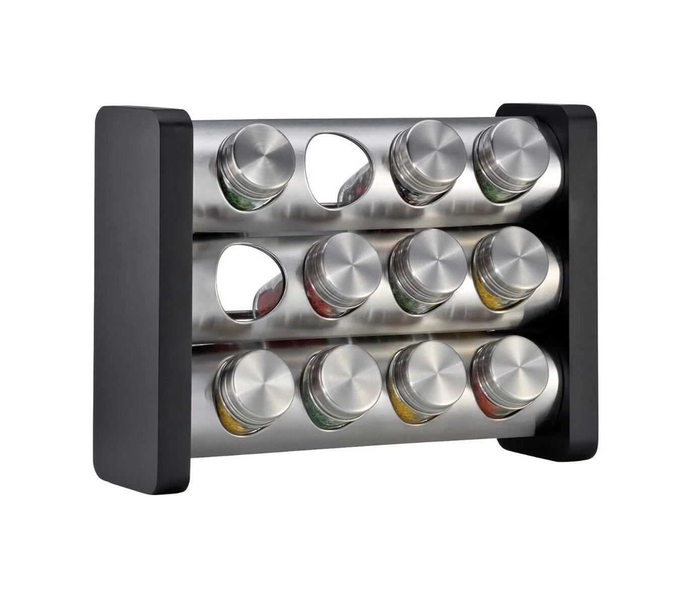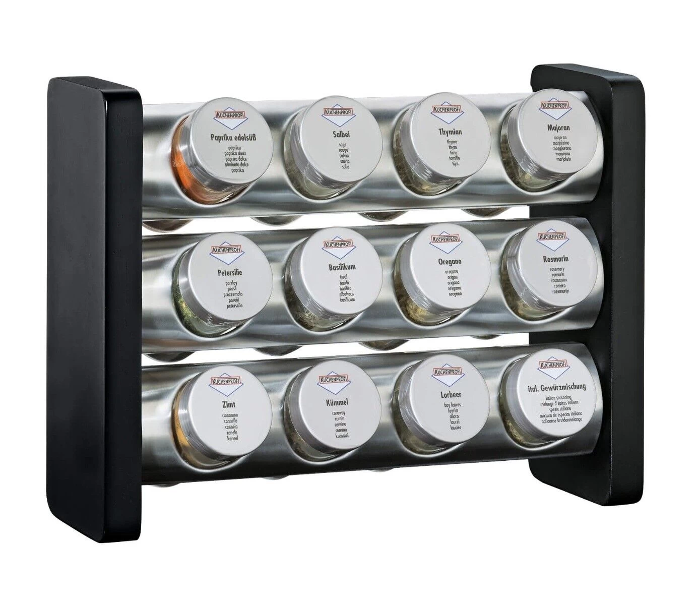 Dit Küchenprofi kruidenrek is vervaardigd uit hout en roestvrij staal en heeft 12 glazen potjes. De hoogte van het kruidenrek is 12 cm. Gebruik het kruidenrek om verschillende kruiden en specerijen in te bewaren.