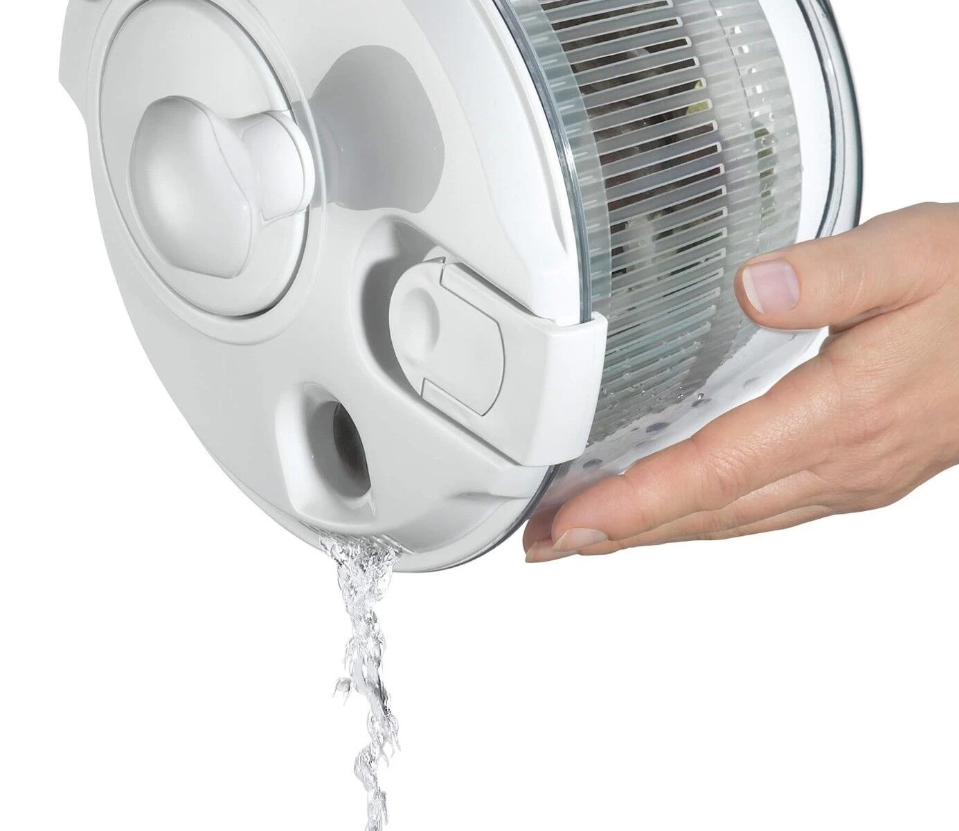 De Küchenprofi slacentrifuge is vervaardigd uit kunststof. U plaatst de te wassen groenten in de het binnenste vergiet. Deze draait soepel in de buitenste wateropvangbak. Plaats het deksel en draai aan de knop op het deksel. De Küchenprofi centrifugeert uw natte sla droog. Het water giet u eenvoudig uit de opvangbak door het gat dat in het deksel zit.
