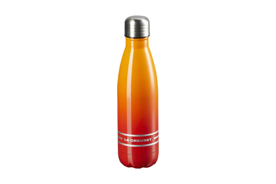 Met de roestvrijstalen waterfles van Le Creuset neemt u zowel warme als koude dranken mee voor onderweg. Verwarm de fles voor met warm water en uw warme dranken blijven vervolgens tot wel 12 uur warm. Koude dranken blijven tot wel 24 uur koel. De fles is geschikt voor diverse soorten dranken, maar vul hem niet met zuivelproducten, frisdranken, droogijs of vruchtensap.