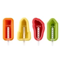 De gekleurde Game It ijsvormen van Lékué zijn vervaardigd uit silicone en kunststof. Met de vorm maakt u eenvoudig ijslollies in verschillende vormen. Elke ijsvorm heeft een inhoud van 55 ml is voorzien van een deksel om de ijsvorm af te dekken. De vormen worden geleverd in een set van vier stuks.