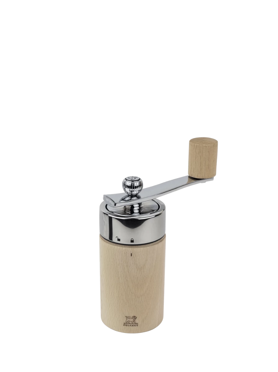 Een traditioneel ontwerp in een nieuw jasje, dat is de beste omschrijving voor de Isen-nootmuskaatmolen van Peugeot. Het design is vervaardigd uit naturel beukenhout en doet denken aan de krukmolens uit grootmoeders tijd. De nootmuskaatmolen heeft een diameter van 6,25 cm en is 15 cm hoog. U maalt de nootmuskaat door te draaien aan de roestvrijstalen kruk aan de bovenkant. De grofheid past u aan door te draaien aan de knop bovenop de draaikruk. Op de metalen draaiknop bovenop bevindt zich de het logo van Peugeot.