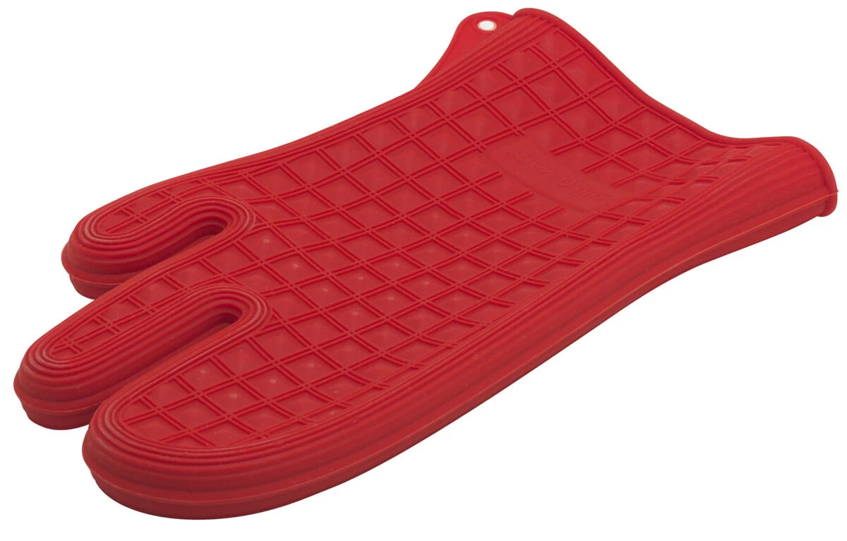 De rode Silikomart ovenwant van silicone heeft een lengte van 27 cm. De ovenwant heeft een losse wijsvinger voor optimale grip. Gebruik de ovenwant voor het vastpakken van uw hete pannen.