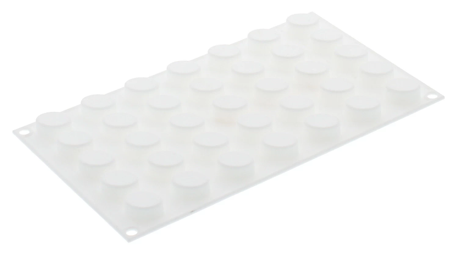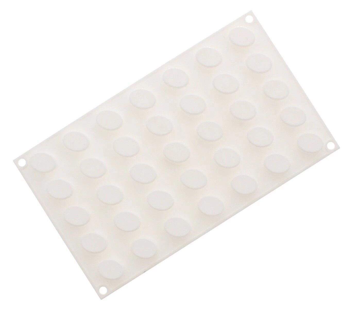 De Silikomart Professional Micro Oval 5 bakvorm bevat 35 ovale vormen met elk een inhoud van 5 ml, een lengte van 2,65 cm, een breedte van 1,95 cm en een hoogte van 1,25 cm. De witte siliconen bakvorm is in totaal 30 x 17,5 cm (l x b) en geschikt voor gebruik in de magnetron, oven en diepvries.