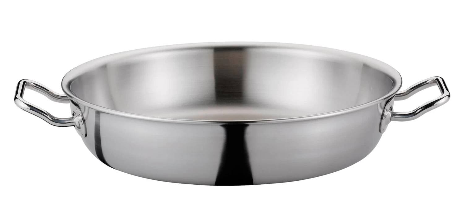 De gesloten rand van de pan zorgt ervoor dat de drielaags aluminium kern volledig omsloten is door roestvrij staal. Hierdoor wordt erosie van de kern in afwasmachines voorkomen.