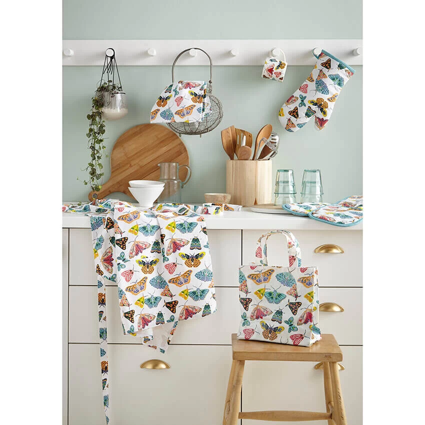 Het witte Ulster Weavers Butterfly House schort is gemaakt van katoen. Gebruik het schort om uw kleding tegen spetters en vlekken te beschermen. Aan de voorzijde is het schort voorzien van een print met kleurrijke vlinders. Het schort is ontworpen met een verstelbare nekband en praktisch voorvak.Het schort is 95 cm lang en 70 cm breed