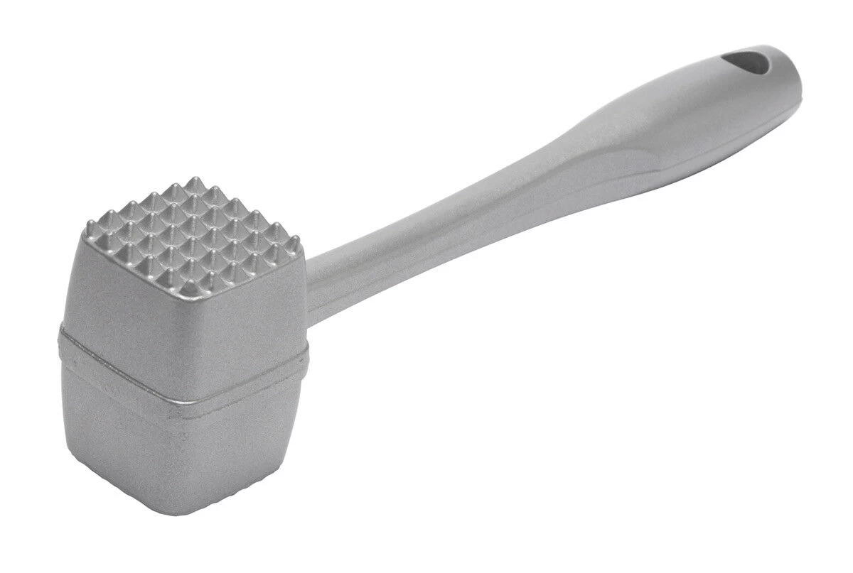 De stabiele gebalanceerde vleeshamer is gemaakt van hoogwaardig geperst aluminium en heeft een speciale coating voor levensmiddelen. De hamer heeft twee oppervlakken met een fijne en een grove punt. Zo kunt u vlees naar eigen wens mals slaan.